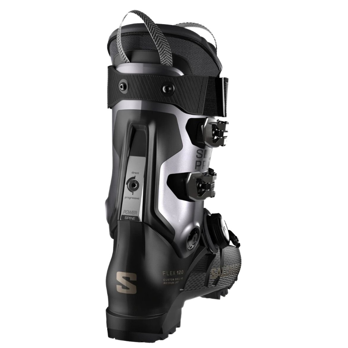 Konstrukci dále vylepšuje Power Spine, kovová deska spojující manžetu se skořepinou, která podporuje lýtka a poskytuje silnou dopřednou flexi i za obtížných sněhových podmínek. Bota je vybavena plně rozebíratelným a nastavitelným jazykem, který umožňuje úpravu výšky nártu přidáním nebo odebráním materiálu podle potřeby (+/-8 mm).