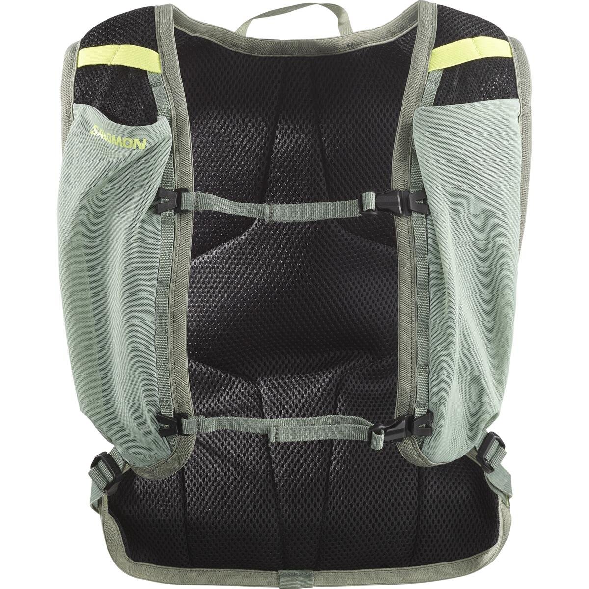 2 přední kapsy na láhve: Tyto přední kapsy určené pro pružné lahve Salomon omezují nárazy. Vrchní elastická poutka zabezpečují lahve, které jsou připravené k použití.
