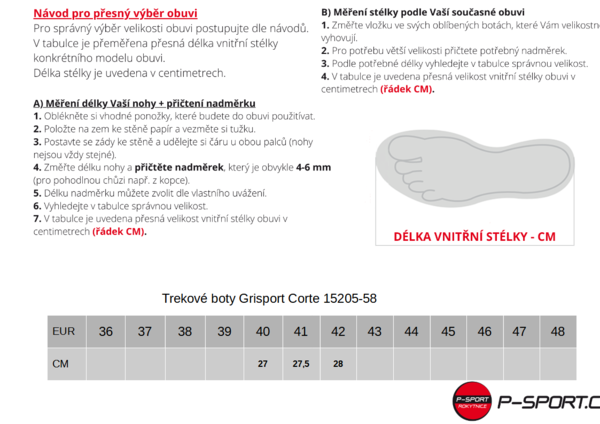 Pro výběr správné velikosti využijte přiloženou velikostní tabulku.